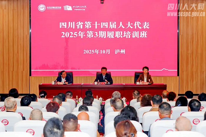 10月20日,省十四届人大代表2025年第三期履职培训班在泸州开班,来自21个市(州)的省、市人大代表和从事代表联络工作的干部共110余人参加培训。受省人大常委会党组书记、副主任王雁飞委托,省人大常委会党组副书记、副主任罗强出席开班式并作动员讲话。