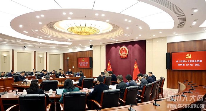 10月27日,省十四届人大常委会党组召开第50次(扩大)会议,专题传达学习中国共产党第二十届中央委员会第四次全体会议精神,以及省委常委会(扩大)会议有关部署要求,研究贯彻落实意见。省人大常委会党组书记、副主任王雁飞主持会议并讲话。