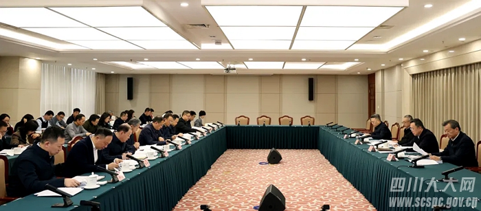 12月29日,省委全面依法治省委员会立法协调小组专题会议在省人大常委会机关举行,会议深入学习贯彻习近平法治思想,贯彻落实党的二十届四中全会、中央全面依法治国工作会议和省委十二届八次全会精神,研究2026年度立法计划编制和省级地方性法规清理工作,分析形势任务,部署下一阶段工作,切实以良法保障四川现代化建设。省人大常委会党组书记、副主任、省委全面依法治省委员会立法协调小组组长王雁飞主持会议并讲话。省人大常委会副主任彭琳,副省长、公安厅厅长黄瑞雪,省人大常委会秘书长贾瑞云出席会议。