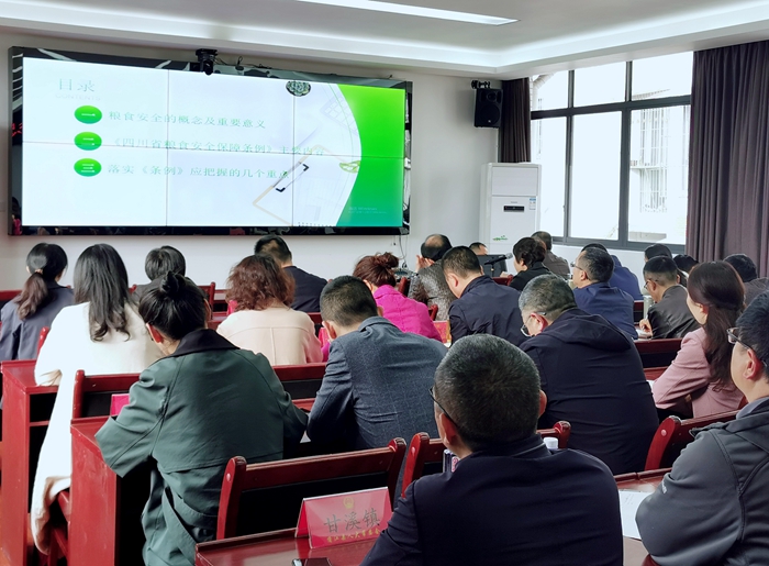 3月23日上午,蒲江县人大常委会组织开展第三期“委室主任上讲台”活动。邀请县人大经济委负责人围绕《四川省粮食安全保障条例》(以下简称《条例》)《四川省地方粮食储备管理办法》(以下简称《办法》)立法背景、适用范围、主要内容和我县粮食安全现状等进行深度讲解,并对拟开展《条例》执法检查工作进行研讨部署。
