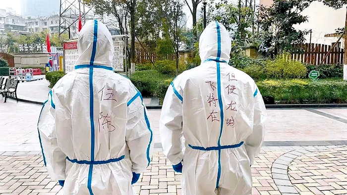 街道、社区领导十分担心王鸣亮的伤情。王鸣亮说:“只要工作需要,我就有责任顶上!”来到封控区后,他从“基层管家”转变为抗“疫”战士,身穿的防护服上永远写着一句话:但使龙城飞将在。
