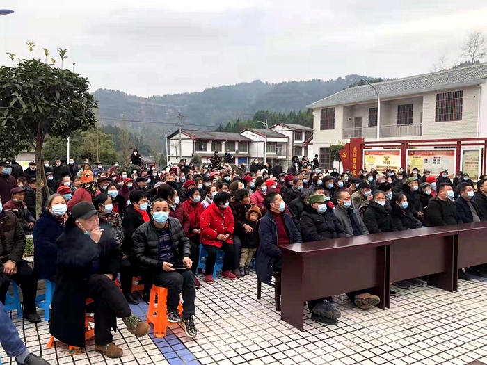 图为开江县人大常委会主任马林调研普安镇民生实施项目意见征求情况座谈会