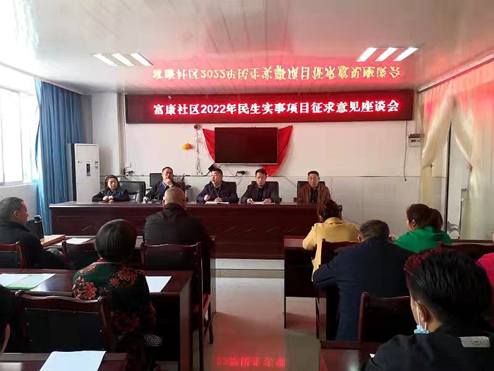 图为普安镇富康社区召开民生实施项目意见征求座谈会