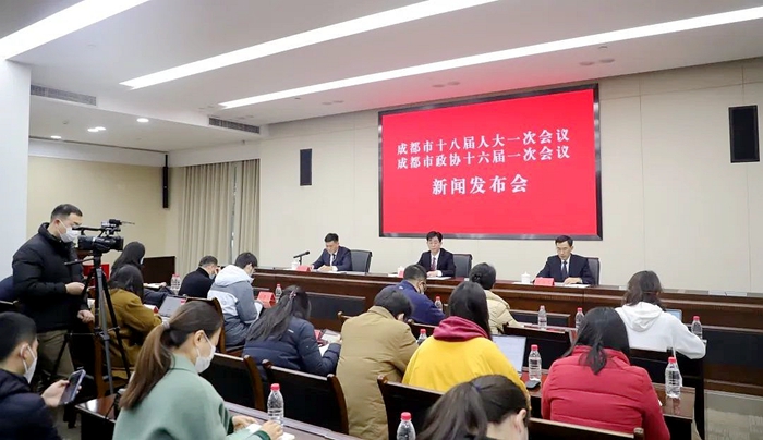 2月16日,2023年成都市两会新闻发布会在成都举行。