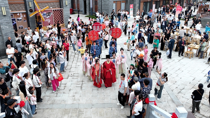 图为:真红巷文旅街区在国庆期间开展“状元巡游”活动
