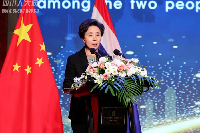 祝春秀向泰国驻成都总领事馆以及在川的泰国企业、朋友表示祝贺,她表示,今年迎来两国建交50周年暨“中泰友谊金色50年”,也是泰国驻成都总领事馆成立20周年,中泰两国是真正的好亲戚、好朋友、好伙伴。近年来,四川与泰国在各领域合作成果丰硕,经贸往来持续扩大,双向投资稳步提升,友城合作不断深化,人文交流更加活跃,两地民众相知互信。未来,四川将积极构筑向西开放战略高地和参与国际竞争新基地,创新发展开放型经济,为包括泰国在内的世界各国开展交流合作创造更多机遇。