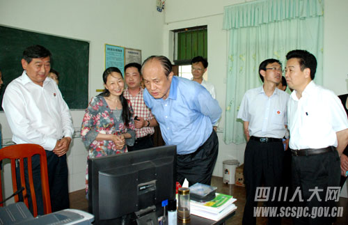 洪虎最关心巴中老区现在的发展,在巴中市人大常委会主任陈延荣的陪同下,他视察了通江洪口镇中心小学,这是洪虎的母亲小时候生活和学习过的地方,也是洪虎第三次来到该校视察,每一次来他都能从学校的发展变化中看到老区日新月异的发展速度,感受老区教育带给贫困革命老区的希望。在学校的多媒体教室,洪虎看到学校信息技术教师正在熟练地操作计算机,一幅幅精美的幻灯片作品不断呈现。他十分欣慰的并指出,学校不仅要让全体师生熟练地操作计算机、运用计算机软件,更重的是要让老师们从信息化教育平台等软件资源中,学习名师们的精典课例,逐步提高教学技能和教学质量;要充分发挥多媒体教室的辐射作用,让周边更多的学校和教师受益;要多与东北师大进行业务联系,随时对软件升级更新,经常维护硬件设施,使资源更优化。