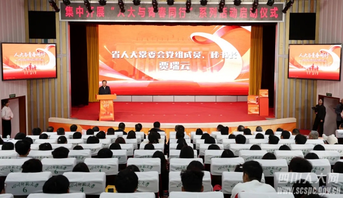 四川人大工作与青春发展同频共振开启新征程。10月28日,四川省人大常委会办公厅、共青团四川省委联合集中开展的“人大与青春同行”系列活动在四川师范大学正式启动。省人大常委会党组书记、副主任王雁飞,省人大常委会党组副书记、副主任罗强,省人大常委会党组成员、秘书长贾瑞云出席启动仪式。