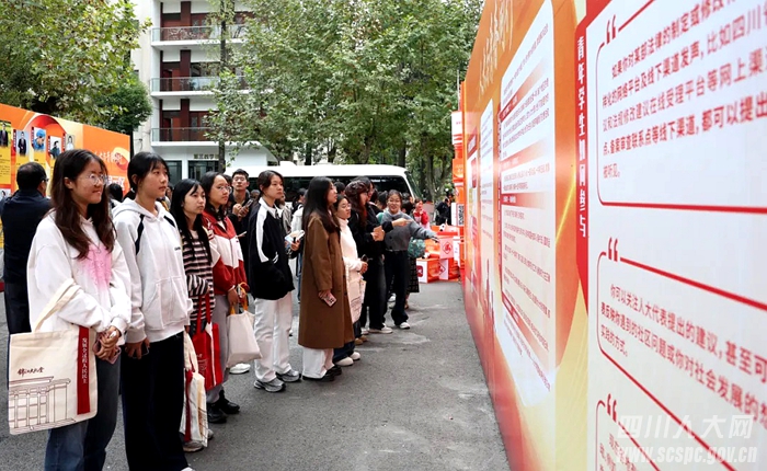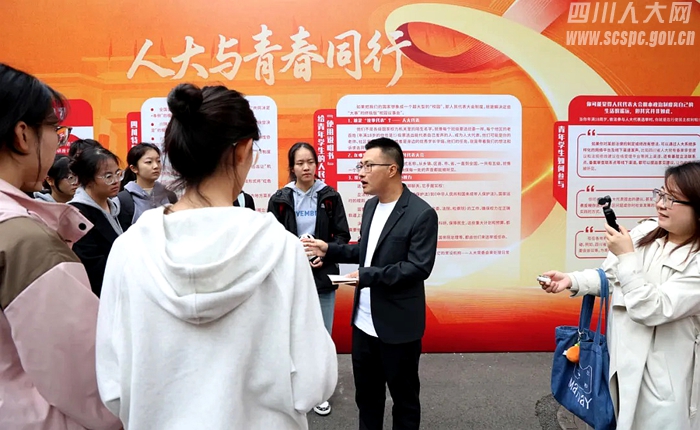 启动仪式现场,三大特色展示区成为亮点。青年人大代表形象展示墙前,20位青年代表的履职事迹吸引学生驻足;答题互动屏幕上,“人大知识闯关”游戏让参与者争相比拼;立法展示区里,三星堆遗址保护、川剧传承等地方性法规的图文解读,将抽象法条转化为生动故事。“原来我们四川的立法工作这么贴近生活!”四川师范大学法学院学生刘玉婷一边拍摄展示板,一边感叹道,“这个活动让我觉得人大制度不再是课本上的定义,而是看得见、摸得着的实践。”