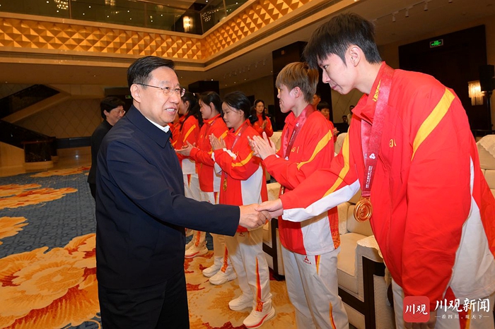 王晓晖指出,站在新的起点,党的二十届四中全会对未来五年发展作出顶层设计和战略擘画,全会通过的《建议》明确提出“统筹推进群众体育和竞技体育发展,加快建设体育强国”,为我们做好新时代体育工作指明了前进方向。推进体育强省建设,需要全省人民共同努力,更需要全省体育战线继续作出新的更大贡献。希望大家发扬连续作战的优良作风,认真总结参赛经验,科学做好备战训练,完成好各类参赛任务,努力在今后各类赛场取得新的优异成绩。希望大家发挥自身的榜样和表率作用,大力弘扬中华体育精神、践行社会主义核心价值观,以实际行动带动全民健身、青少年体育、体育产业蓬勃发展,更好助推四川体育强省建设。