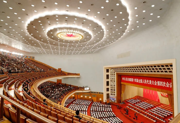 3月5日上午,瑞雪漫卷,为长安街披上银装,也衬得人民大会堂的国徽愈发熠熠。上午9点,十四届全国人大四次会议在人民大会堂开幕。
