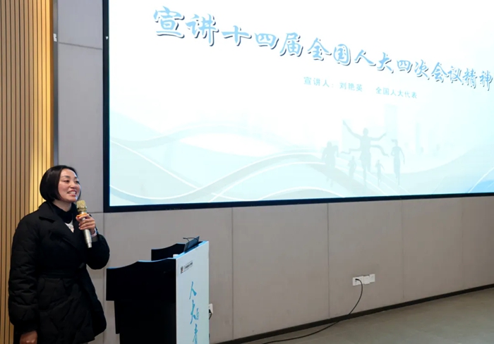 3月19日,全国人大代表,四川省资阳市安岳县文化镇隆恩村党支部书记、村委会主任刘艳英来到位于资阳市临空经济区的四川音乐学院成都美术学院,参加资阳市人大常委会组织开展的“制度铸魂,青春向党——人民代表大会制度进高校”思政课活动,向大学生们宣讲十四届全国人大四次会议精神。