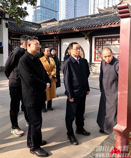 1月15日,省人大常委会副主任何延政率调研组赴成都市昭觉寺、大慈寺开展宗教工作调研。
