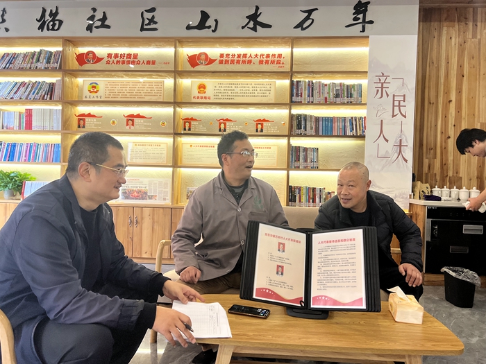 县人大代表、龙苍沟镇人大主席吴建刚正在接访群众,收集建设打造貊貊家园的意见、建议