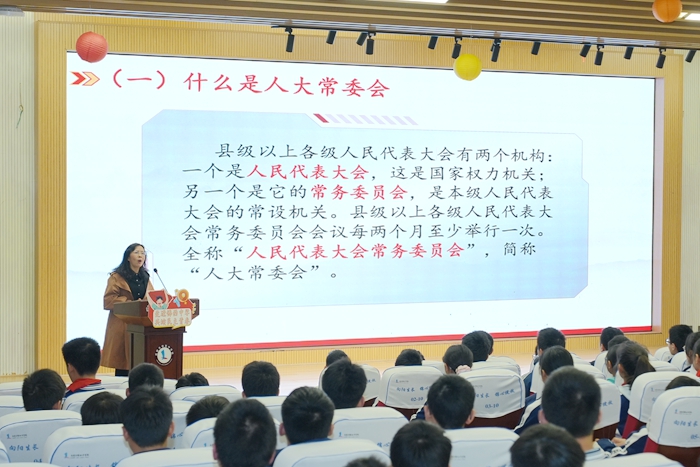 受赠学生,2025级12班刘沁榕说,今天的讲座对于我们是一堂十分有意义的“思政课”,让我对我国这一根本政治制度有了更加直观、深刻的理解。作为新时代的中学生,我们更应主动了解国情、关注社会、心系家国,自觉学习宪法法律,传承和弘扬法治精神,以实际行动展现青年担当,为国家发展和社会进步贡献青春力量。