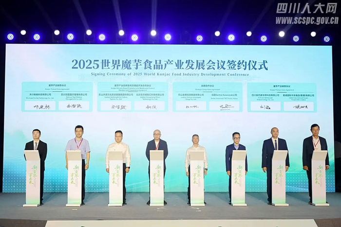 开幕式上还举行了签约仪式,沐川县与法国凡尔登市签订友好合作关系备忘录,与世界中餐业联合会签订战略合作协议,与中国园艺学会魔芋分会签订合作协议。现场还签订了企业合作协议8项、总金额3.73亿元。