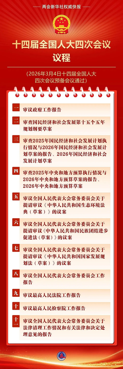 十四届全国人大四次会议议程定了!