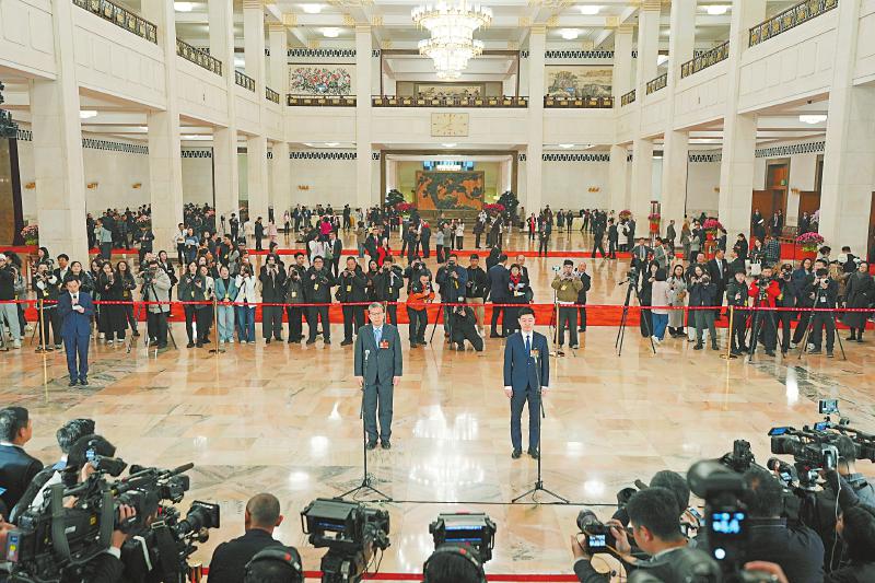 3月5日,第十四届全国人民代表大会第四次会议首场“代表通道”集中采访活动在北京人民大会堂举行。 新华社记者 王曦 摄