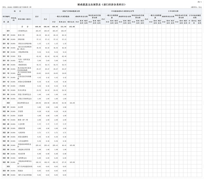 五、财政拨款支出预算表(部门经济分类科目)(公开表2-1)
