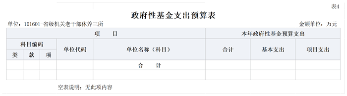 省级机关老干部休养三所2026年没有使用政府性基金预算拨款安排的支出。