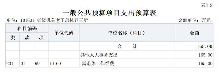 2.一般公共服务(类)人大事务(款) 其他人大事务支出(项)2026年预算数为165万元,主要用于:保障离退休人员活动费用及离退休工作经费。