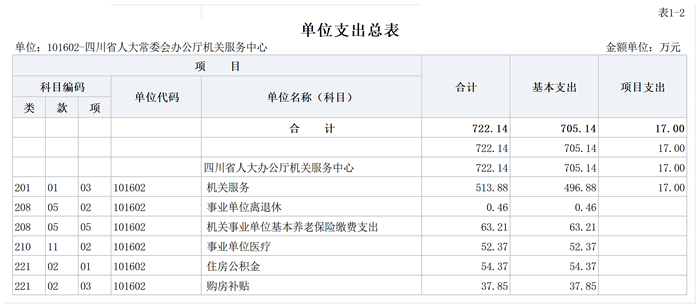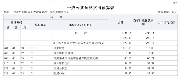 四川省人大常委会办公厅机关服务中心2026年一般公共预算基本支出722.14万元,其中: