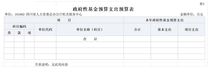 四川省人大常委会办公厅机关服务中心2026年无政府采购项目,未安排政府采购预算。