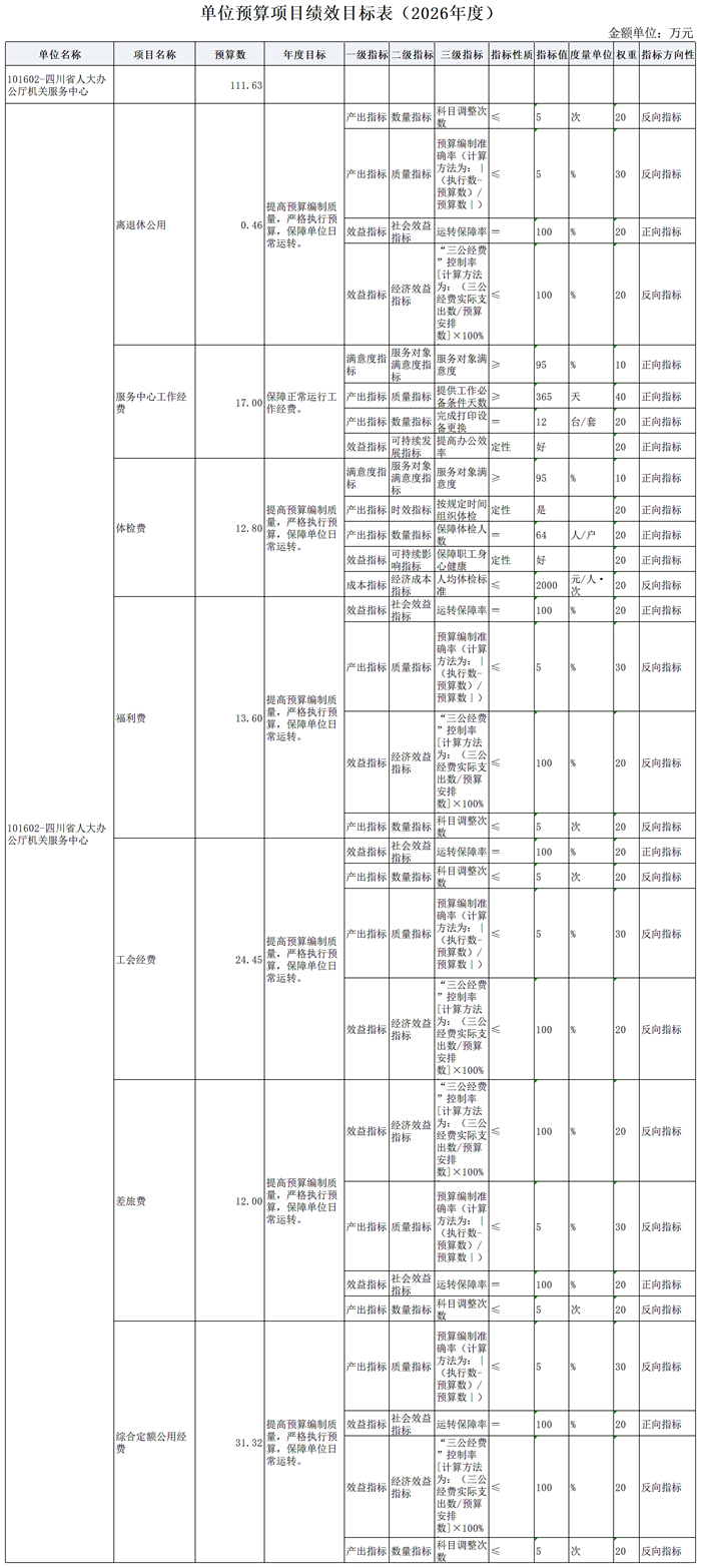 第二部分 四川省人大常委会办公厅机关服务中心2026年单位预算表