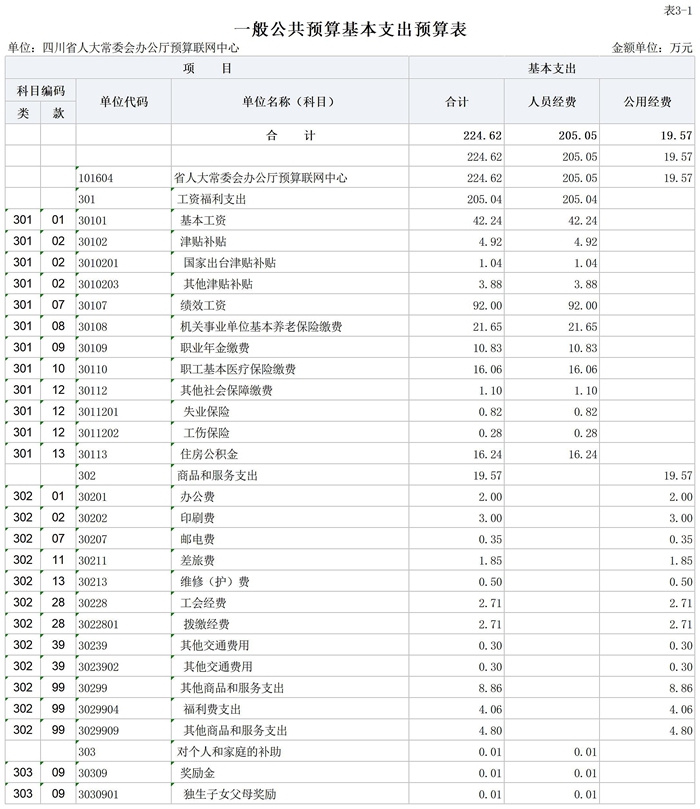 四川省人大常委会办公厅预算联网中心2026年一般公共预算基本支出224.62万元,其中: