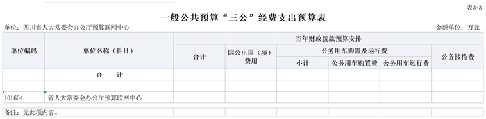 四川省人大常委会办公厅预算联网中心2026年没有使用财政拨款安排“三公”经费预算,与2025年预算相比无变化。