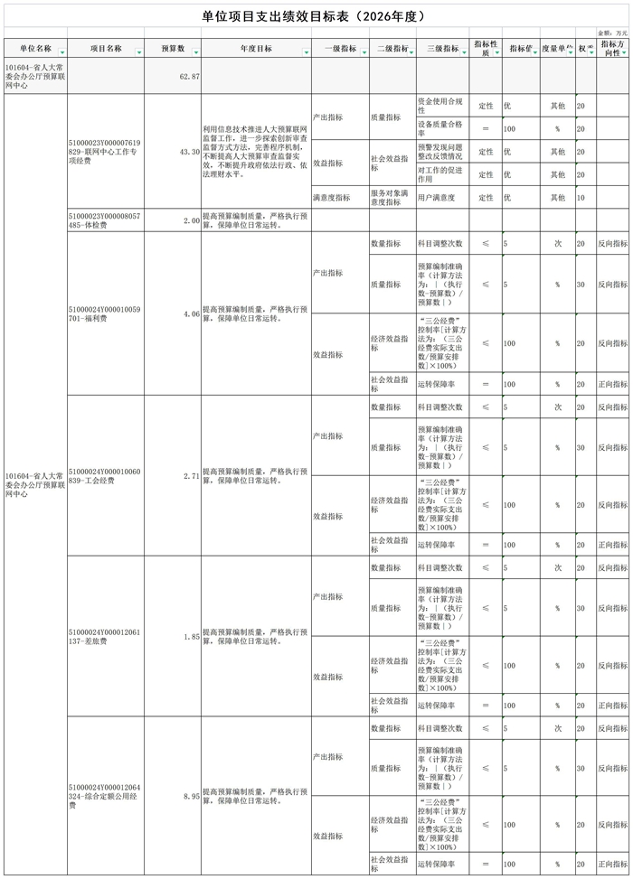 第二部分 四川省人大常委会办公厅预算联网中心2026年单位预算表