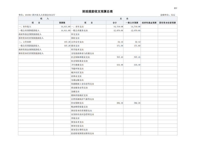 一、单位收支总表