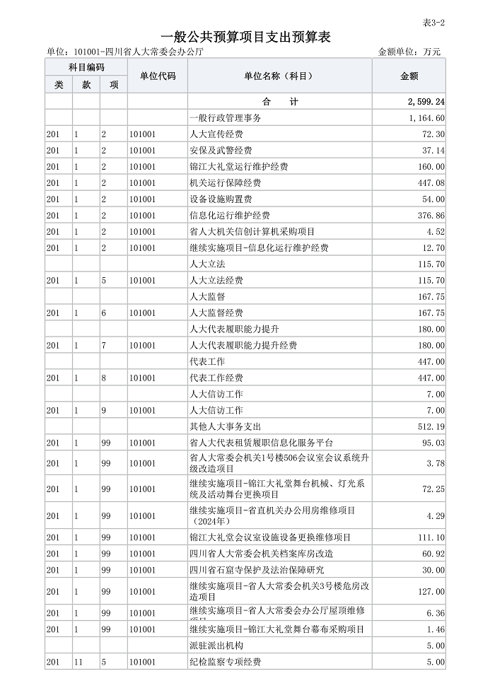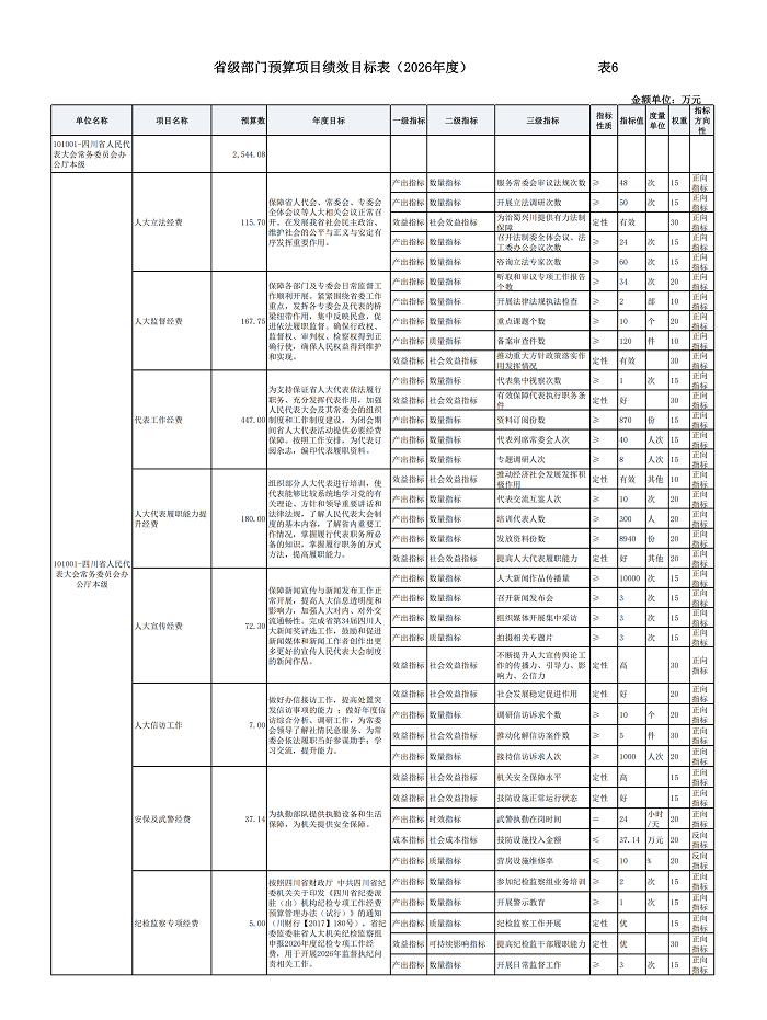 第二部分 四川省人民代表大会常务委员会办公厅2026年单位预算表